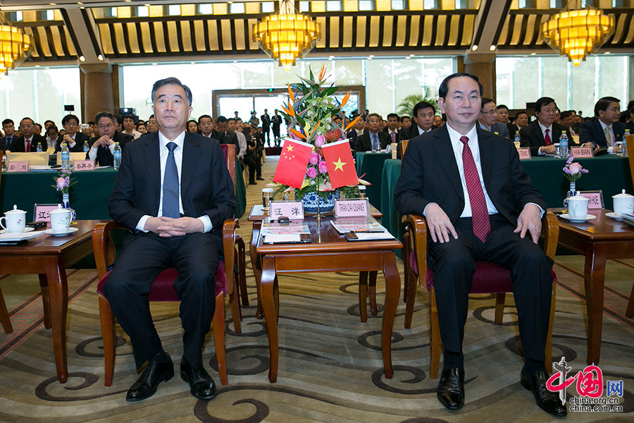 国务院副总理汪洋、越南共和国国家主席陈大光出席2017中国—越南经贸合作论坛开幕式。中国网记者 董宁摄影