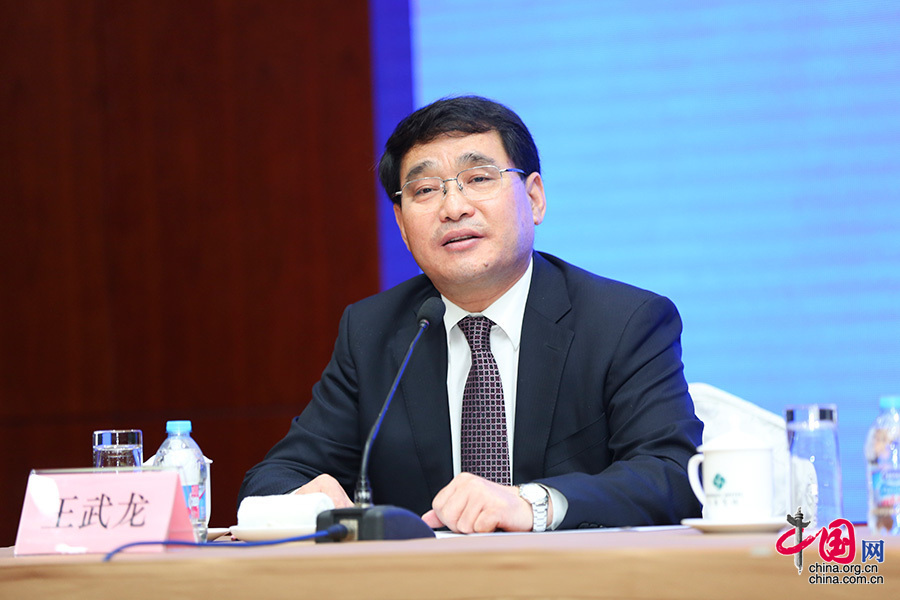 新疆维吾尔自治区党委宣传部副部长王武龙主持发布会。中国网记者 郑亮 摄