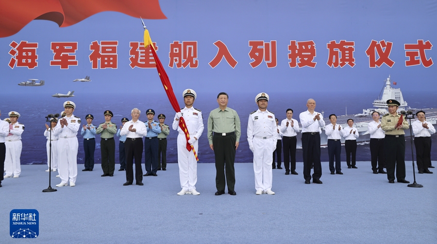 我国第一艘电磁弹射型航空母舰入列 习近平出席入列授旗仪式并登舰视察