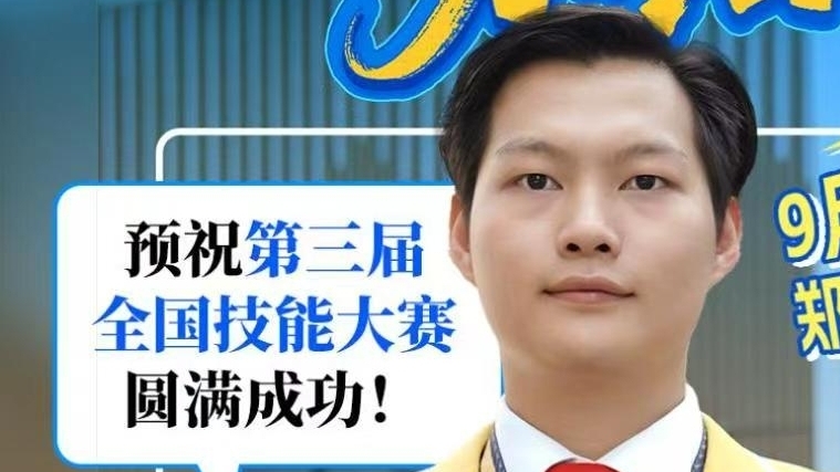 第四十七届世界技能大赛精细木工项目金牌获得者黄波林为国赛加油