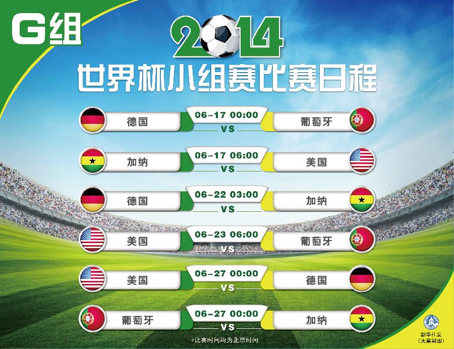 图表:世界杯小组赛比赛日程(G组) 新华社发(大巢制图)