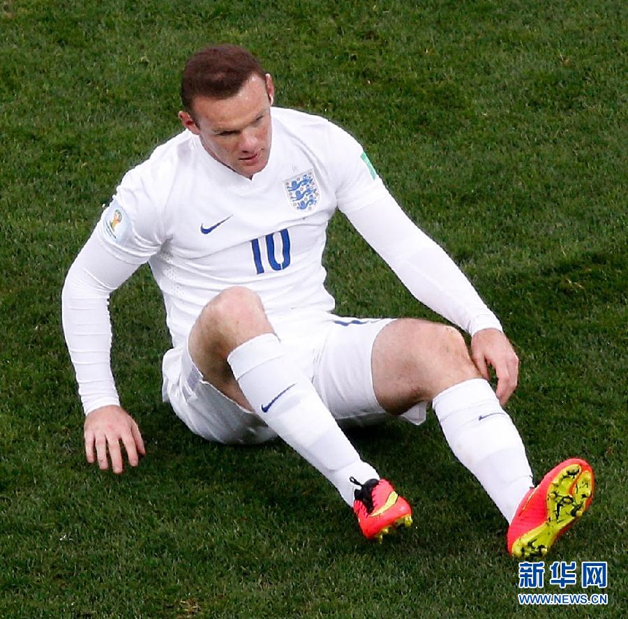 6月19日,英格兰队球员韦·鲁尼在比赛中。当日,在巴西圣保罗伊塔盖拉球场进行的2014年巴西世界杯小组赛D组比赛中,英格兰队对阵乌拉圭队。 新华社记者廖宇杰摄