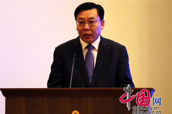 中国商业联合会副会长兼秘书长王民发表演讲。 董宁 摄