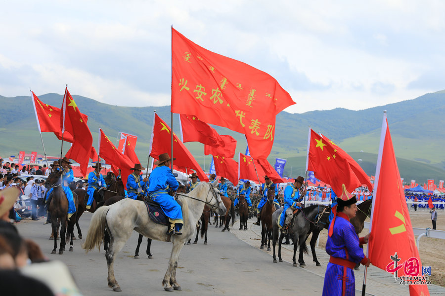 中国网讯 (记者 孙磊) 8月8日,2020年内蒙古自治区兴安盟那达慕在科右前旗乌兰毛都苏木民族体育综合训练基地盛大开幕。