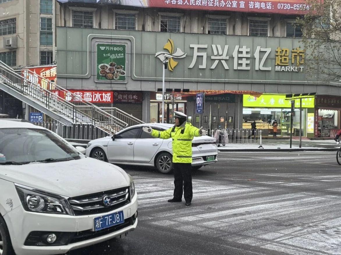 华容公安以雪为令,战严寒、保畅通,以实际行动为群众保驾护航。